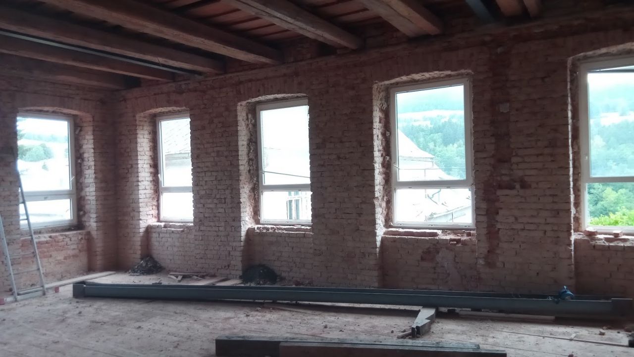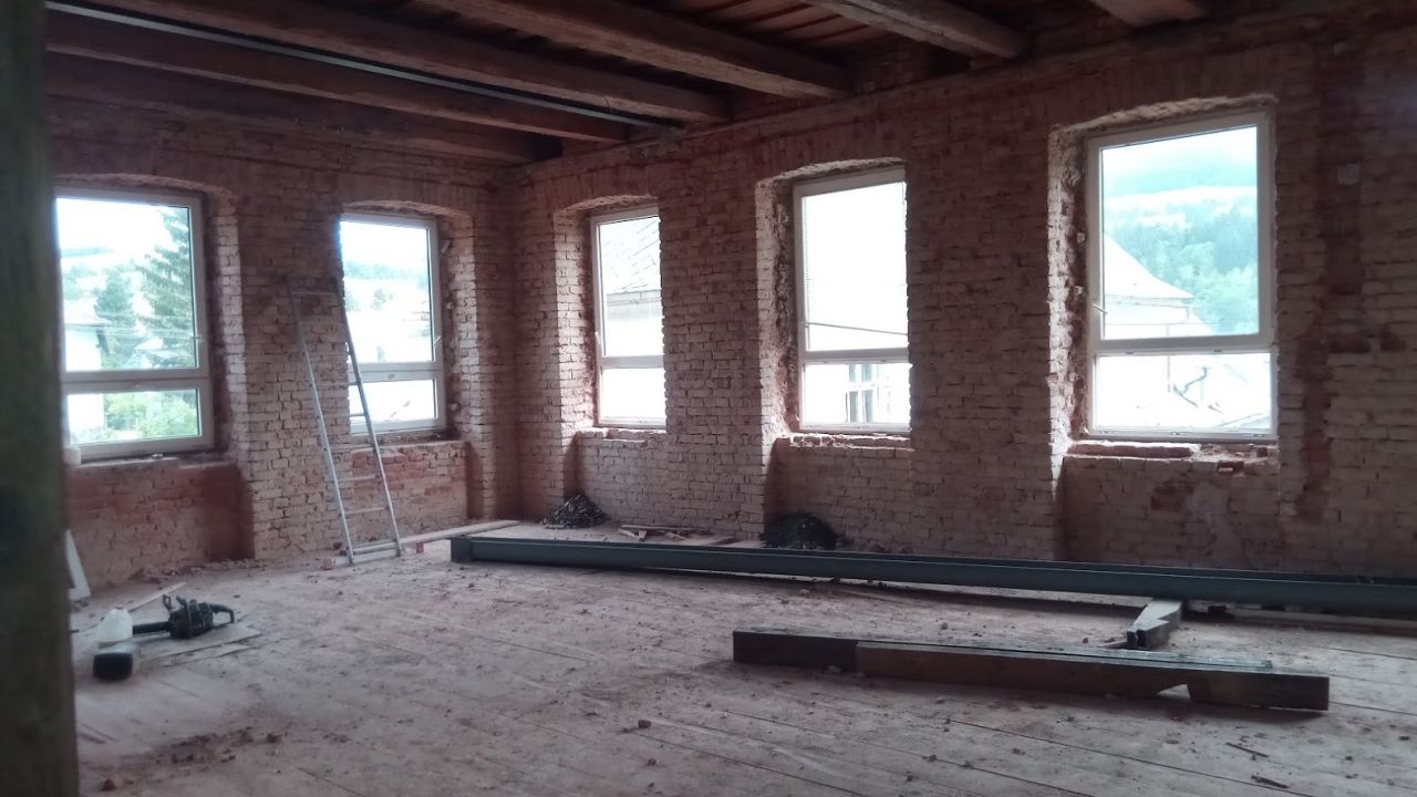Přestavba č.p. 216 (bývalá škola u kostela) na bytový dům a komunitní centrum.